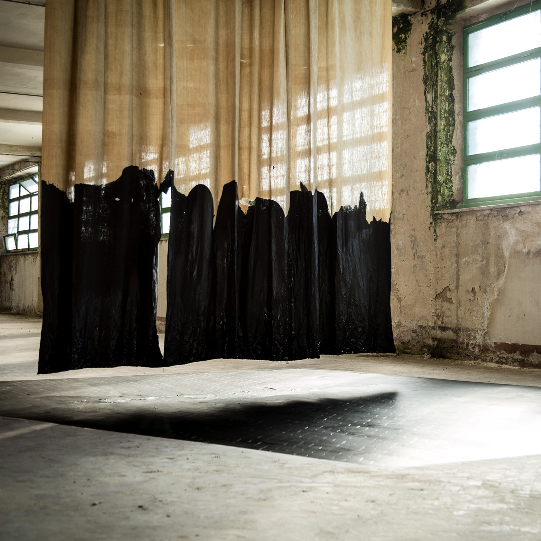 The most common diseases among the female workers of Manifattura Tabacchi were lung cancer and pulmonary emphysema, both affecting the respiratory system. The same diseases that afflicted the cigarette workers of Manifattura continue to affect, yesterday as well as today, consumers of tobacco-based products: smokers. An old tent, acting as a filter between the interior and exterior, becomes the ideal object to explore this dark relationship. By dyeing it, tar, one of the primary components of cigarettes, creates a conceptual link between the history of Manifattura and the present, objectifying through a symbolic gesture the connection between a historical fact and a current fact related to those who consume them. The artwork was created during the workshop led by artist Marzia Migliora.
