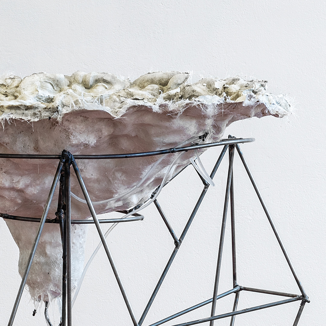 Inspired by the Solarpunk imaginary, the artist conceived the sculpture as a device for collective engagement through which to prepare food and drinks. The artwork was born as part of a larger project that involved a rooftop encampment on Building B9 of Manifattura Tabacchi.